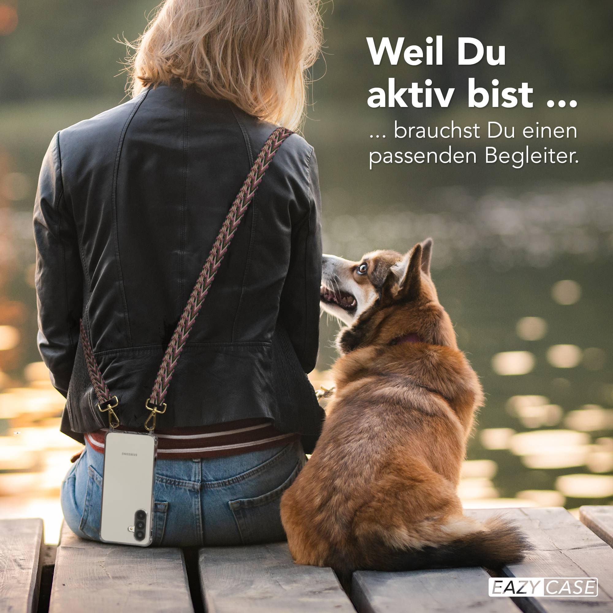Hands-free & immer dabeiCrossbody, um den Hals oder als kurzer Brustbeutel: beide Hände frei, Handy sofort parat.