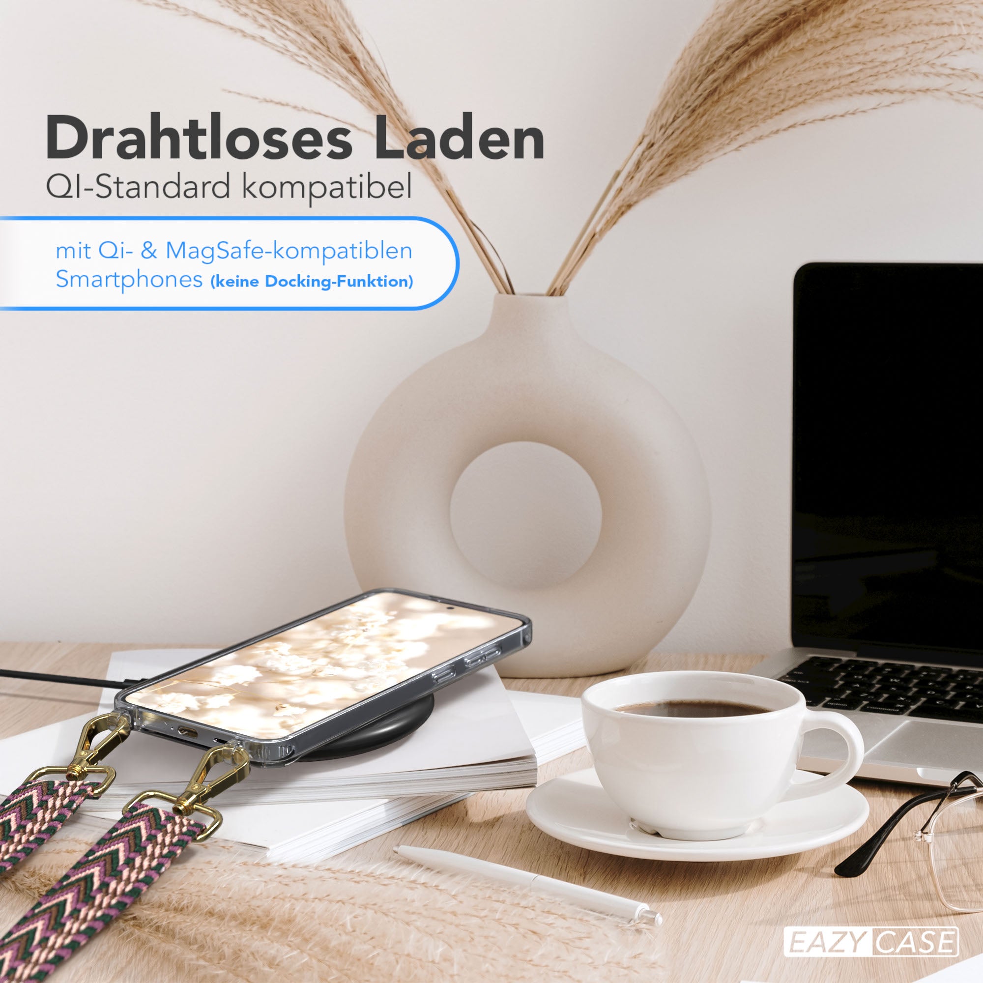 Qi-Charging kompatibelLädt kabellos über alle gängigen Qi-Ladegeräte - Die Hülle kann draufbleiben.