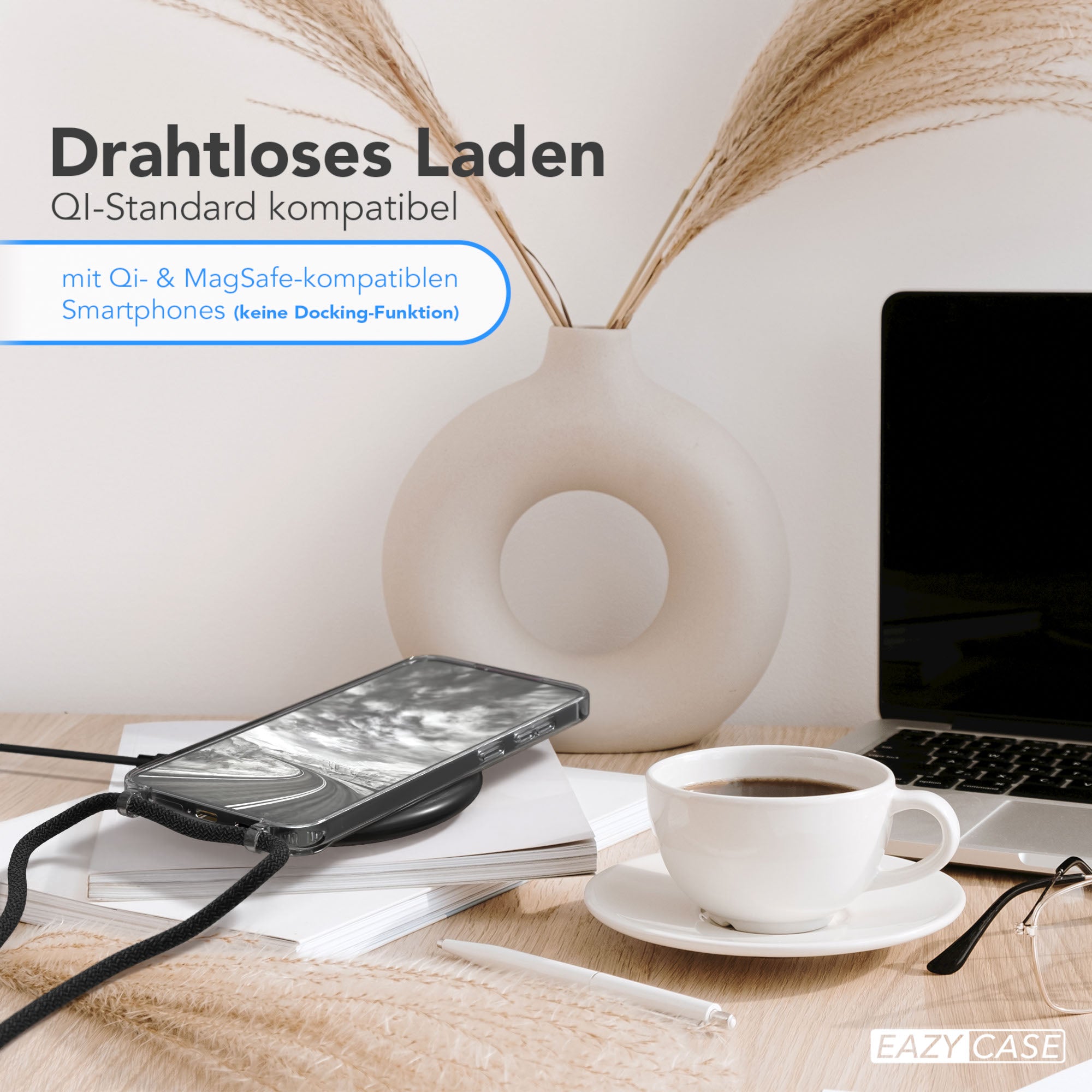 Qi-Charging kompatibelLädt kabellos über alle gängigen Qi-Ladegeräte - Die Hülle kann draufbleiben.