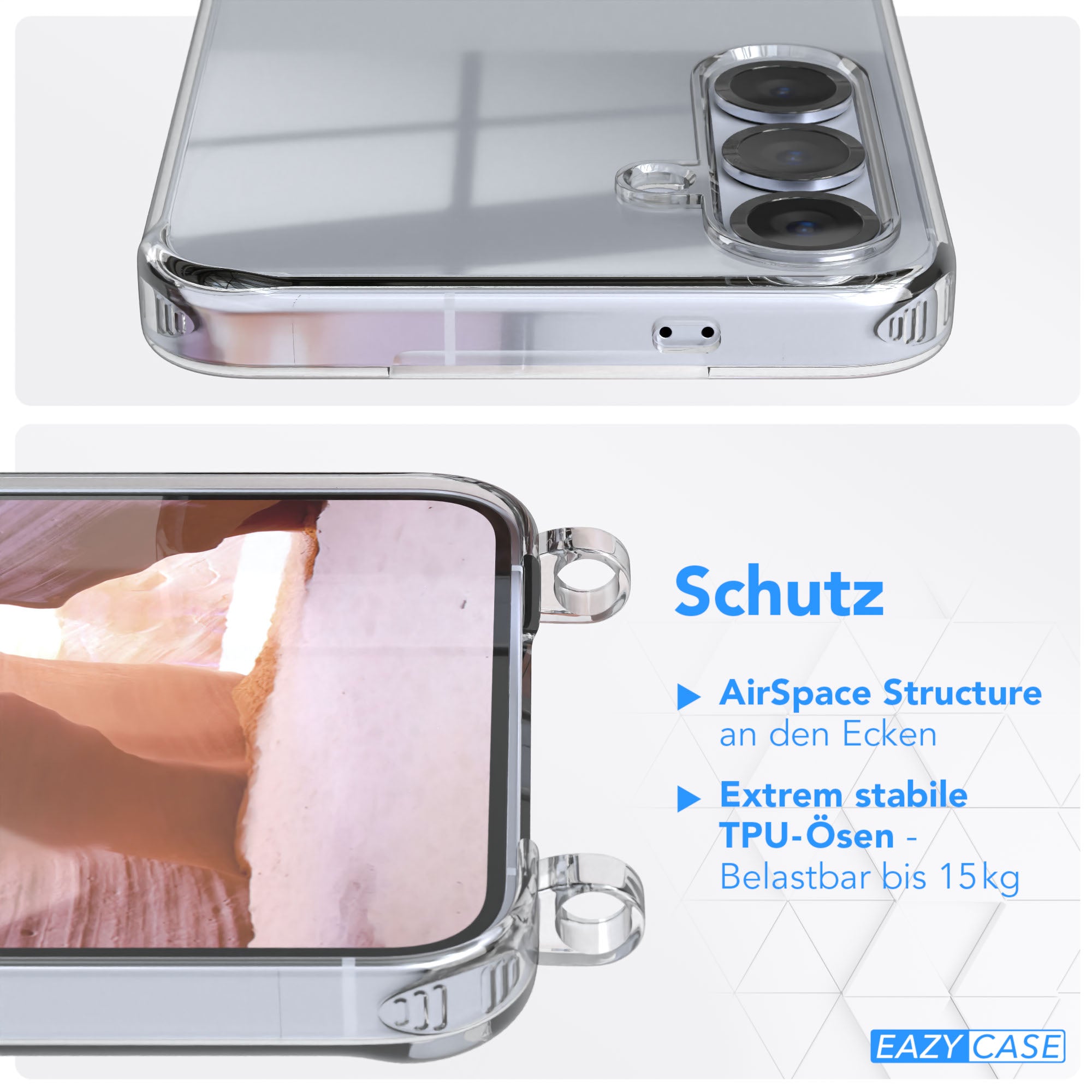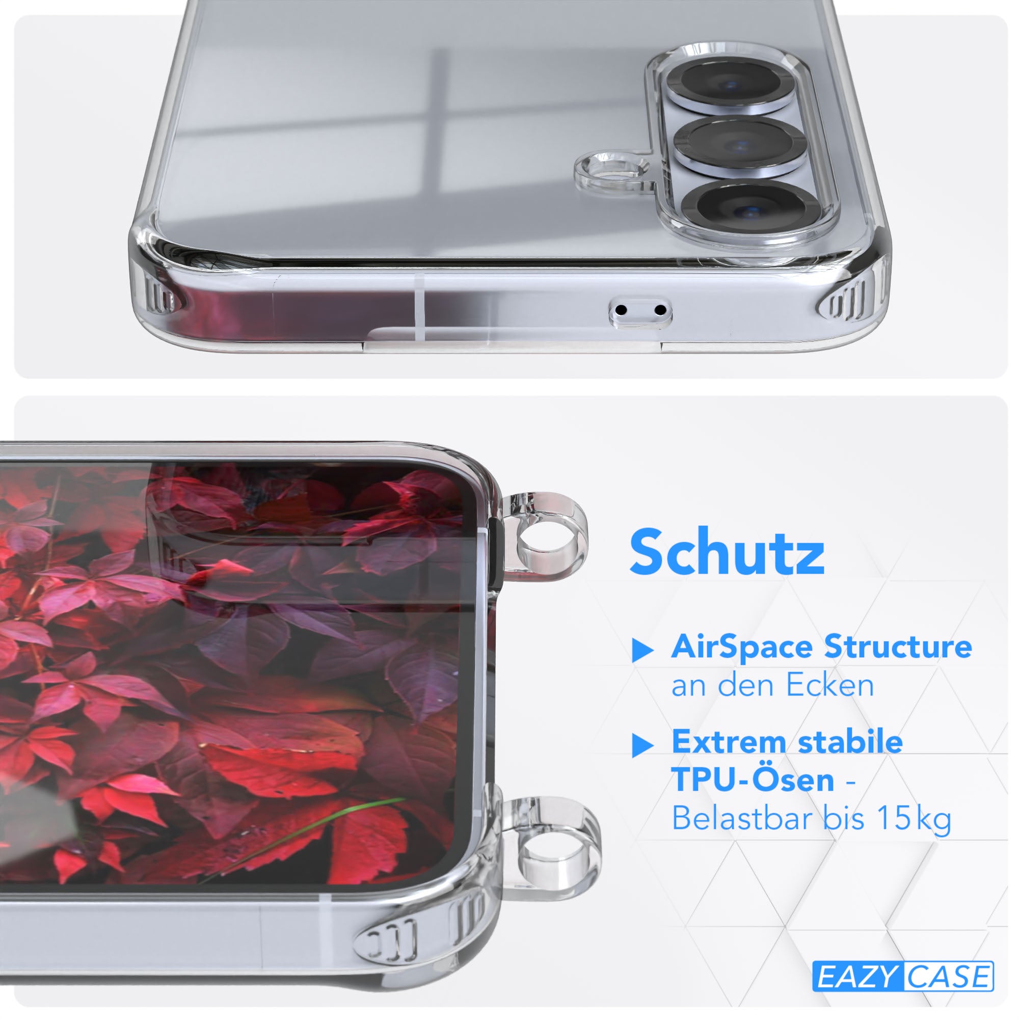 HOCHWERTIGE QUALITÄT: Die EAZY CASE Handy Hülle verfügt über Air Space in Ecken, welche den Sturz optimal abfedern. Zudem bietet die Silikon Hülle äußerst stabile Ösen, welche den größten Belastungen stand halten!