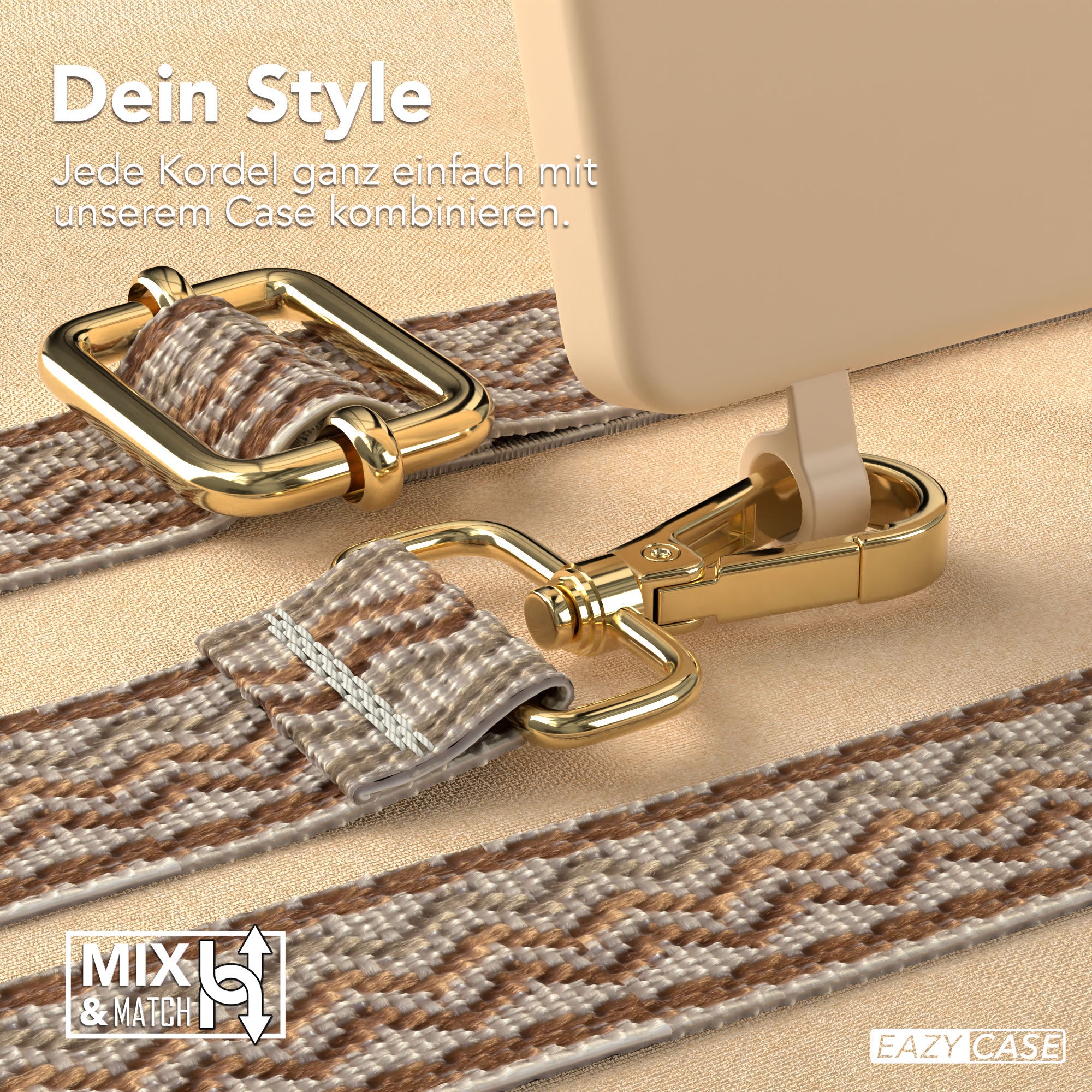 SICHERES STECKSYSTEM: Der Adapter mit Silikonüberzug wird mit einem einfachen Steckmechanismus am Cover befestigt. Sobald der Anpressdruck durch das Einsetzen des Handys entsteht, sind die Ösen fixiert und bieten perfekten Halt für deine Kette